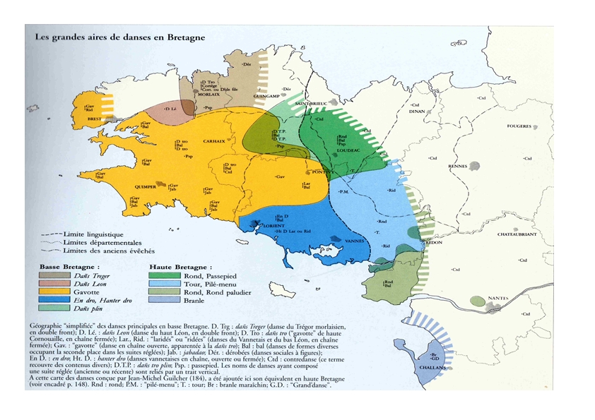 Pour parler de l’histoire de la danse bretonne, voici quelques éléments en image pour se faire une petite idée des terroirs de quelques danses bretonnes (les plus parlantes pour les amateurs). Pour plus de détails suivre le lien Wikipedia ci-dessus.